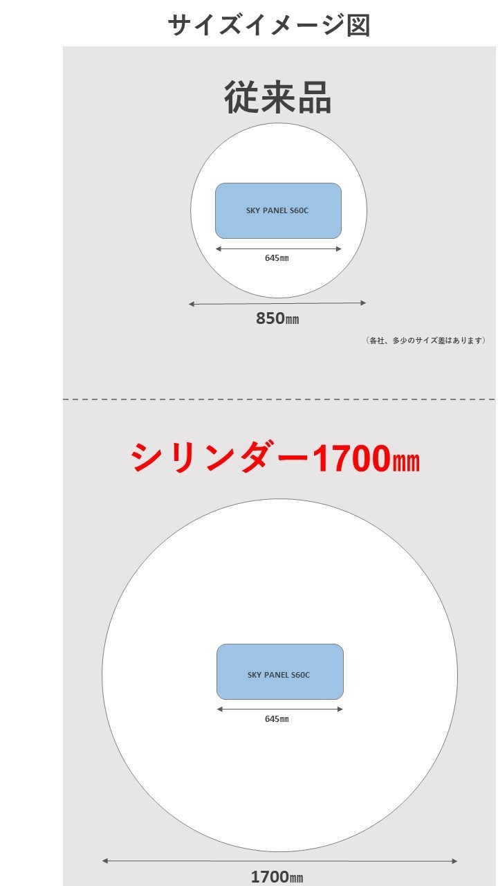 これまでに使用されてきた一般的な円柱形ディフューザーの径よりサイズアップ!!(約2倍)