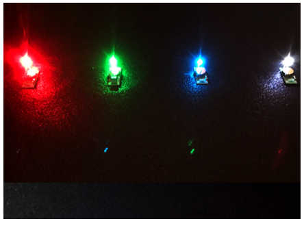 RGBの色相を可変することで様々な色合い+白(透明色)の発光ができます。